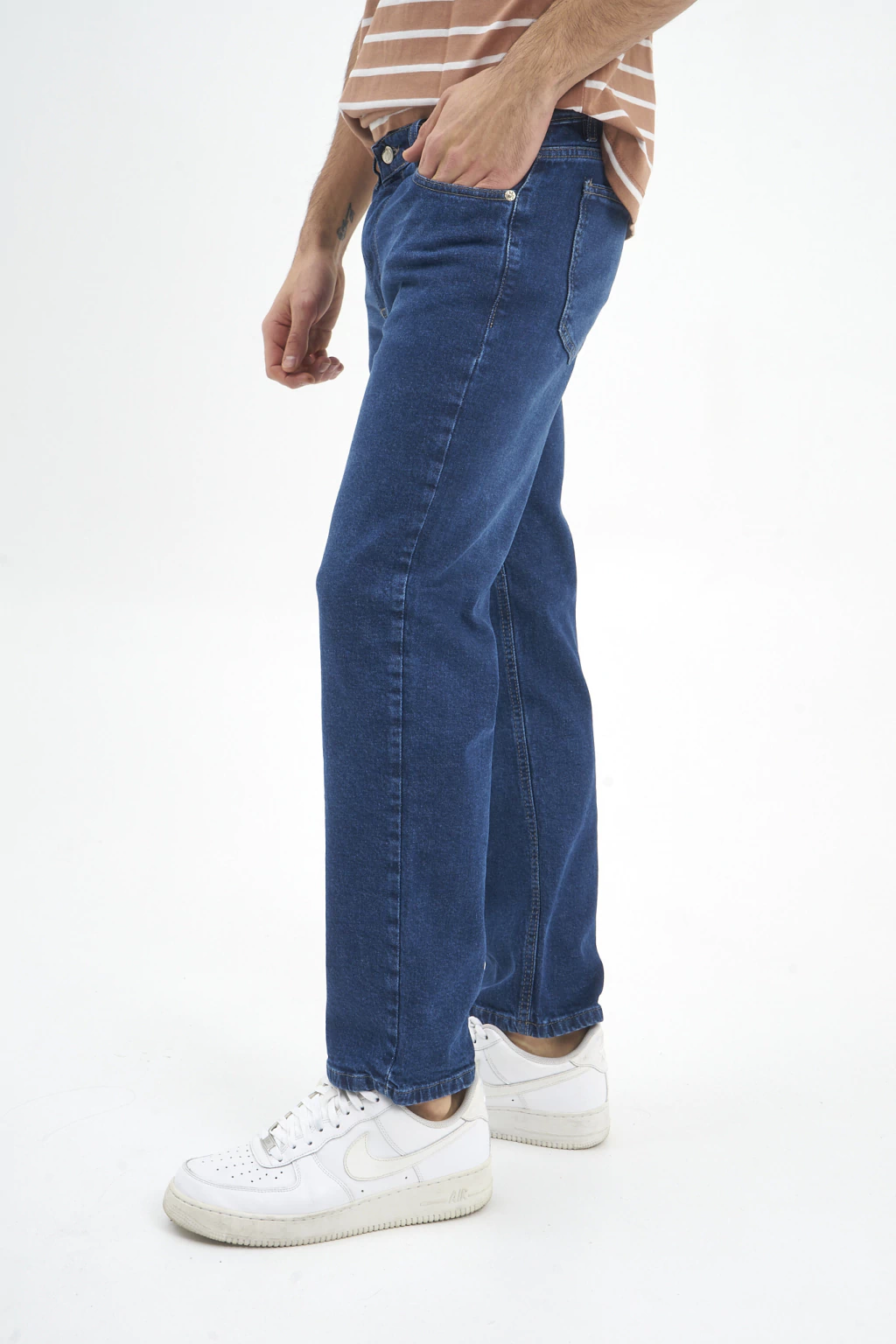 Jean tiro medio recto elastizado localizado con bigotes.