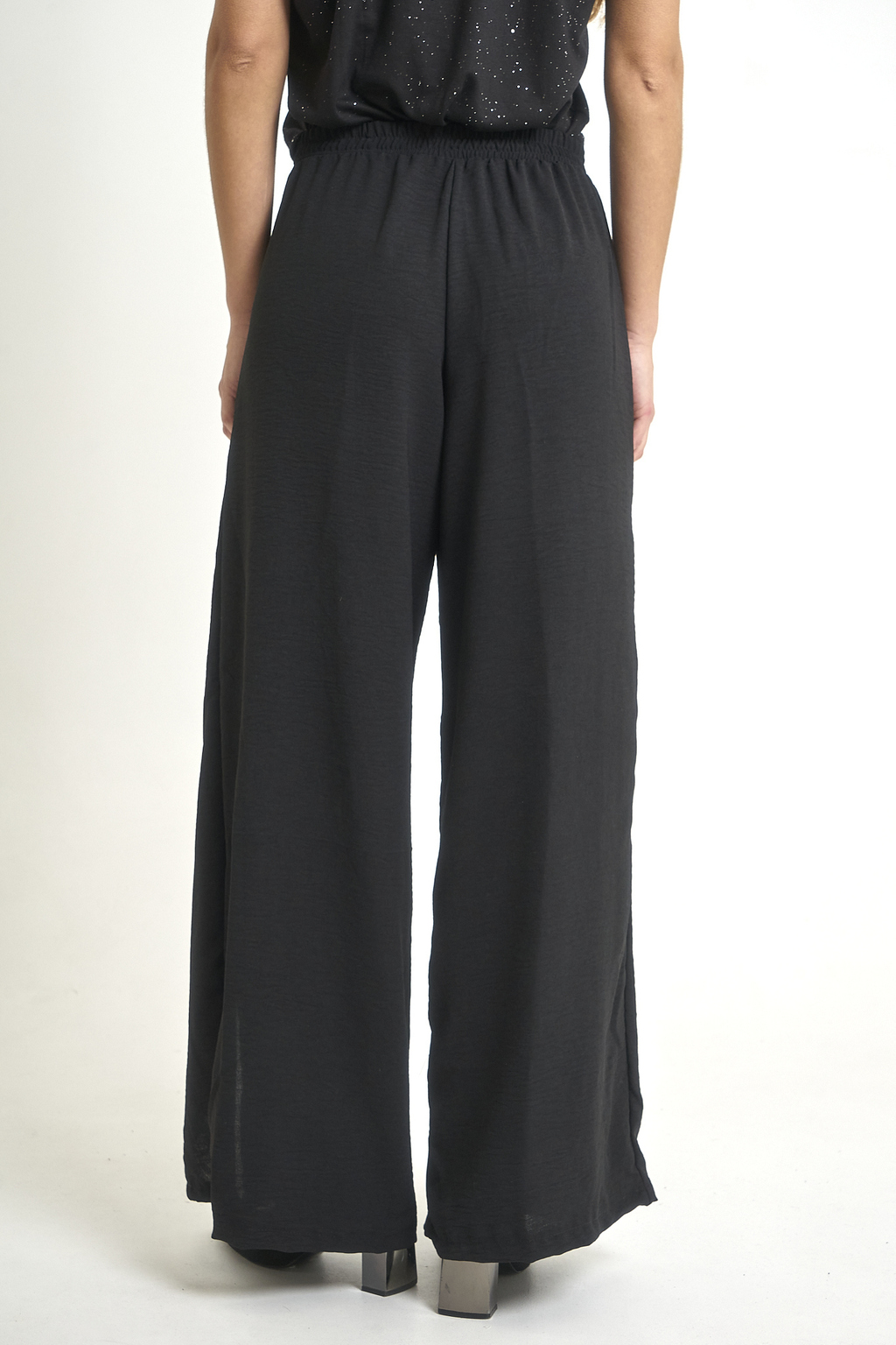 Palazzo de crepe con elástico en cintura y cruce en el frente.