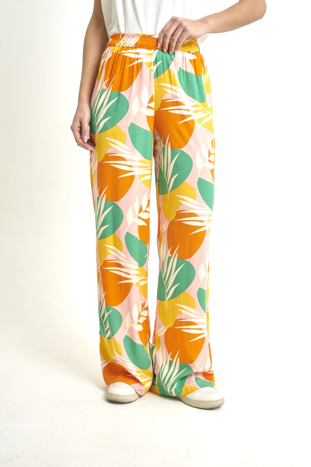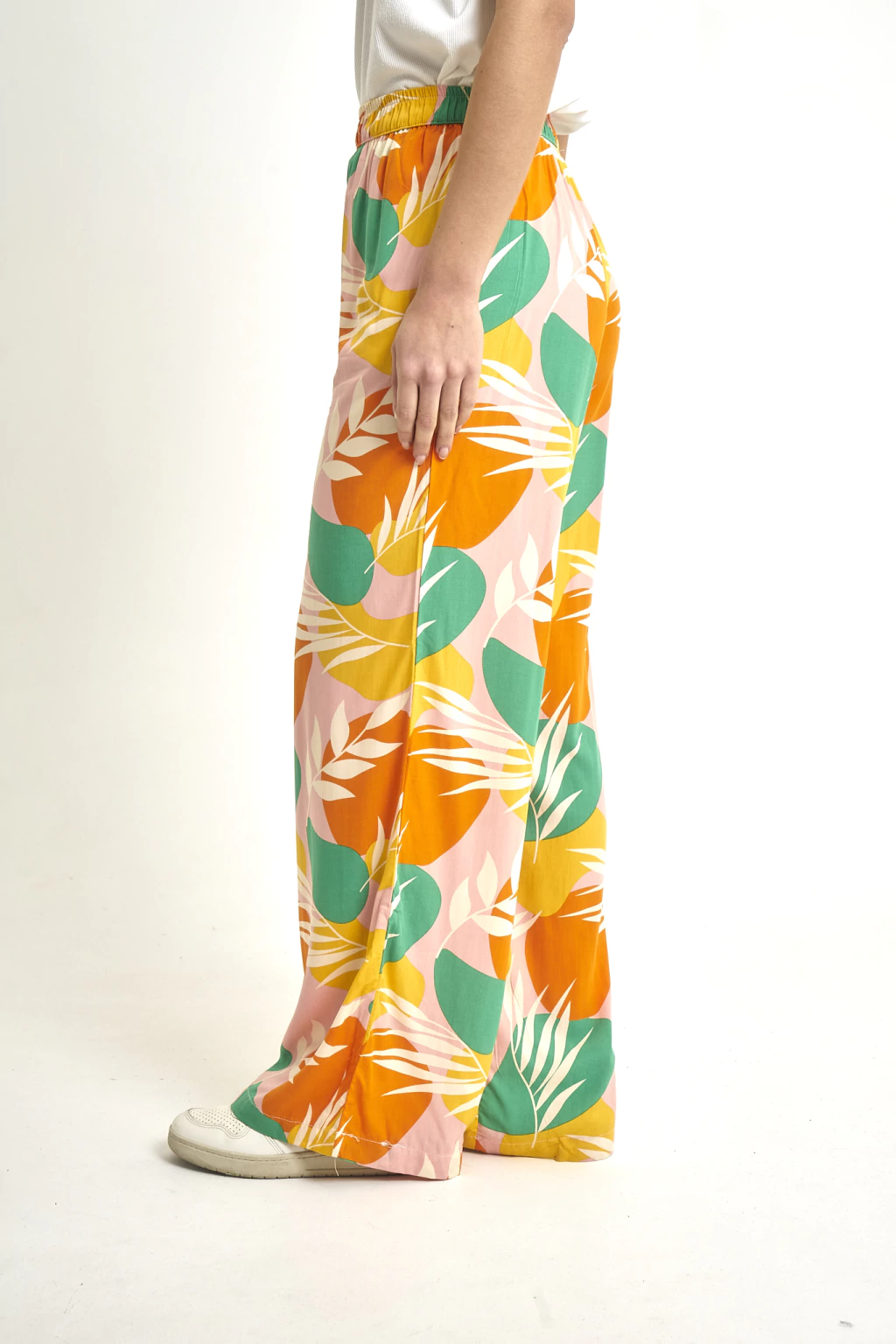 Palazzo de fibrana estampada con elastico en cintura y bolsillos.