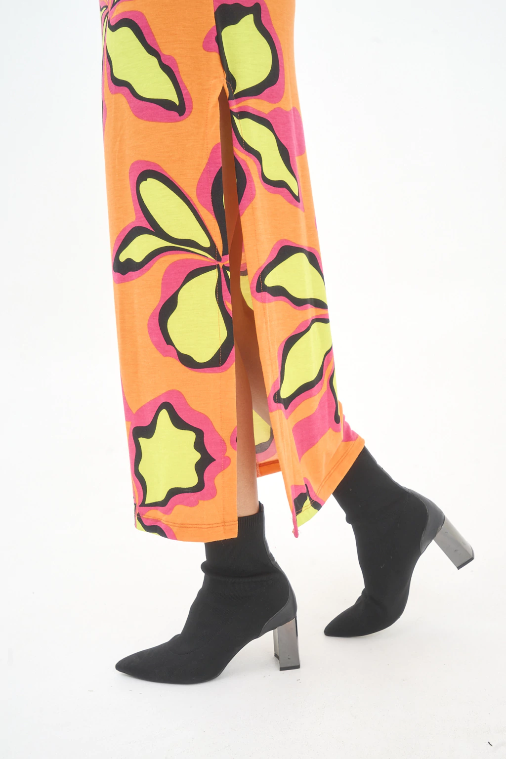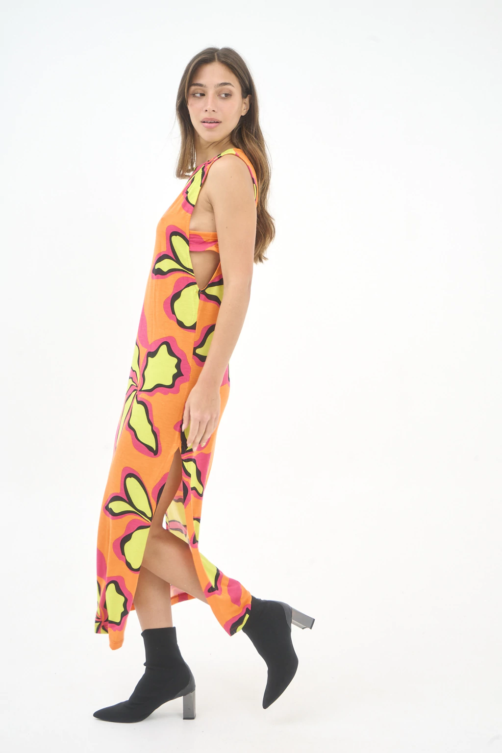 Vestido sin mangas de modal estampado con tira al costado y tajo.